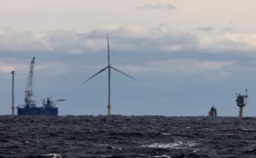 FILE - The first operating South Fork Wind farm turbine, Thursday, Dec. 7, 2023, stands east of Montauk Point, N.Y....