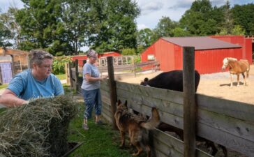 An aerial photo shows the flooding on Dec. 18, 2023, of the Blue Heron Farm and Retreat in Turner. Ron...