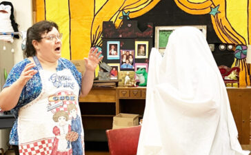 Courtesy photo / The Tyrone Community Players present the comedy “Opal’s Million Dollar Duck.” Rehearsing a scene are Sara Best...
