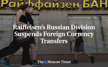 The Russian division of Austria’s Raiffeisen Bank will suspend foreign currency transfers for nearly all of its clients in the...