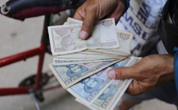 An ice cream street vendor shows his Cuban pesos in Havana, Cuba, Monday, April 20, 2024. An increasing number of...