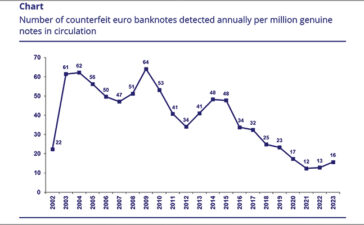 The European Central Bank’s annual report on counterfeit euro bank notes issued on Jan. 29 included the comment that the...
