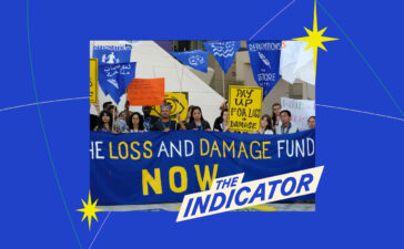 Activists demonstrate for the Loss and Damage Fund, which provides a flow of money from rich to less rich nations...