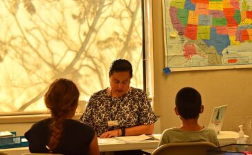 Laura Arroyo of Jewish Family Service meets with family members seeking asylum. Photo by Chris Stone Rep. Juan Vargas, D-San...