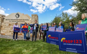 Mike Johnston, then-president and CEO of Gary Ventures and now the current mayor of Denver, speaks in support of Proposition...