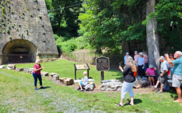 PHOTO PROVIDED Bonnie Hannis, left, president of the Clinton County Historical Society, tells history buffs and society...