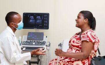 Mariam, who has a vision impairment, consults with a radiographer during her routine antenatal visit at the Comprehensive Community Based...