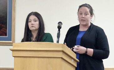 The Inter-Mountain photo by Edgar Kelley Shelby Wilson, left, and Elizabeth Shahan spoke to the Randolph County...