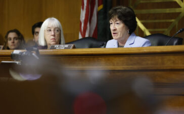 Senate Appropriations committee Chairwoman Patty Murray (D-WA) (L) and Ranking Member Susan Collins (R-ME) (R) participate in a hearing in...