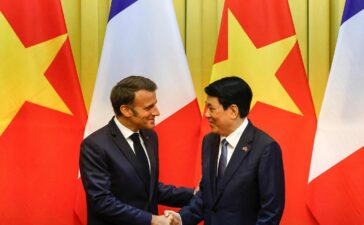 Emmanuel Macron and Vietnamese President Luong Cuong, at a meeting at the presidential palace in Hanoi, Vietnam, on May 26,...