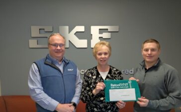 Joseph Sienicki, SKF Aeroengine Factory Manager and Gregory Livingston, Factory Business Development Lead, accept Retool WNY mini-grant award from Jamestown...
