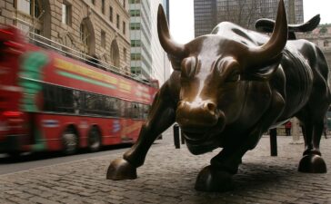 A tour bus passes the Wall Street bull in the financial district of New York City. Getty Images As yields...