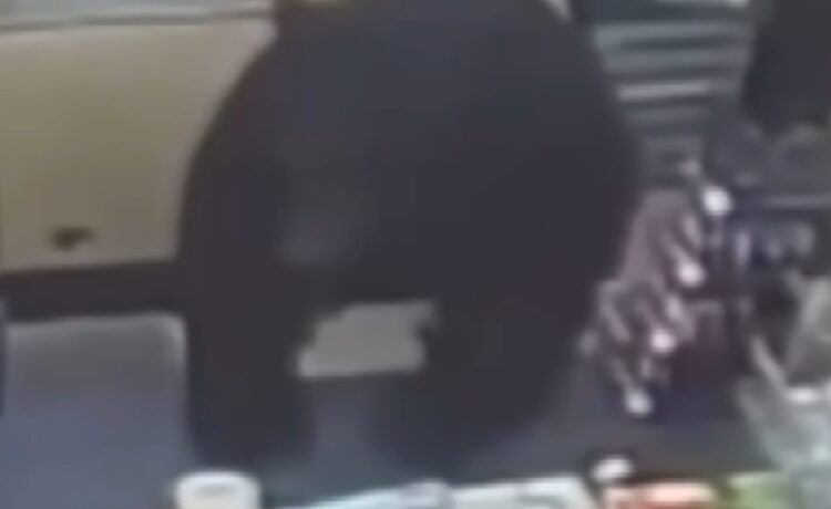 Once Frazee and the store employee were in the locked car, they felt safe. The black bear stayed inside the Family Dollar for 10 minutes or so, and security cameras even captured the big ol’ creature jumping over the same counter that Frazee and the Family Dollar employee had been standing on minutes prior.