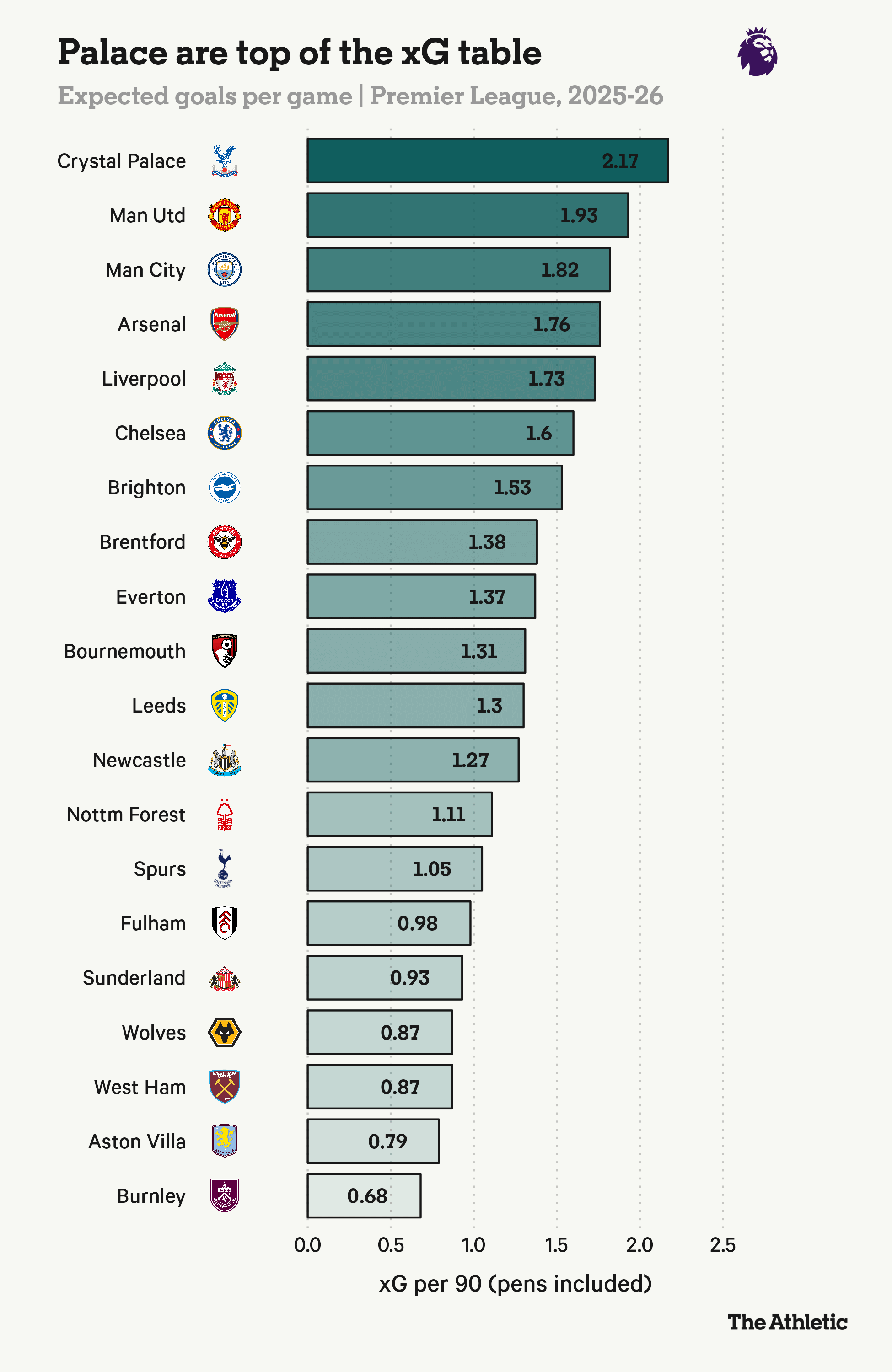 - The best attacking unit in the Premier League, according to expected goals (xG) calculations, above, are none other than Crystal Palace. Look out for those low crosses through the box.