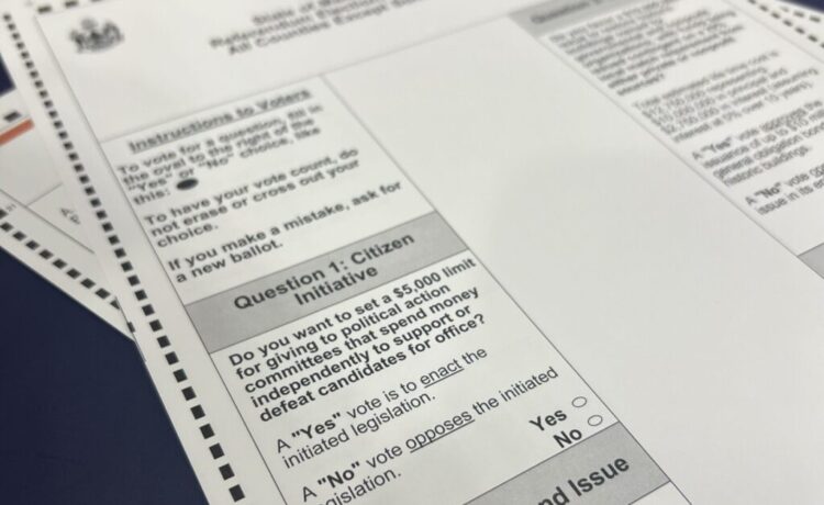 Question 1 on the 2024 ballot asked voters to limit the amount of dark money spent in state elections. (Photo by Emma Davis/ Maine Morning)