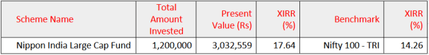 Nippon India Large Cap Fund – 10 Year SIP