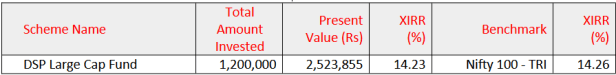 DSP Large Cap Fund – 10 Year SIP
