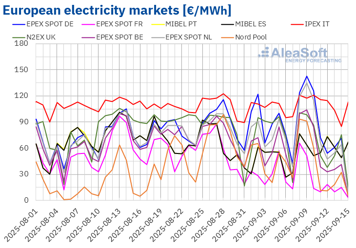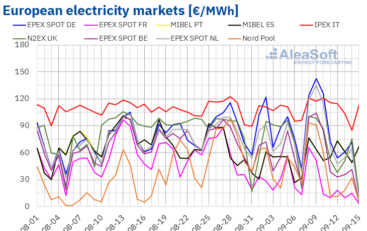 The weekly average electricity price increased across most major European markets during the second week of September, according to analysis by AleaSoft Energy Forecasting.