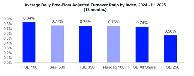 Equally, there is a perception that the US markets are more liquid. Overall, the US market trades more, but adjusting for size, the UK market proves to be just as competitive. In fact, liquidity in the UK, when measured by the free-float adjusted turnover ratio, is comparable to the US, with indices like the FTSE 100 and FTSE All-Share showing robust trading activity. This means, contrary to popular belief, issuers in London can benefit from active investor engagement and fair price discovery without having to cross the Atlantic.